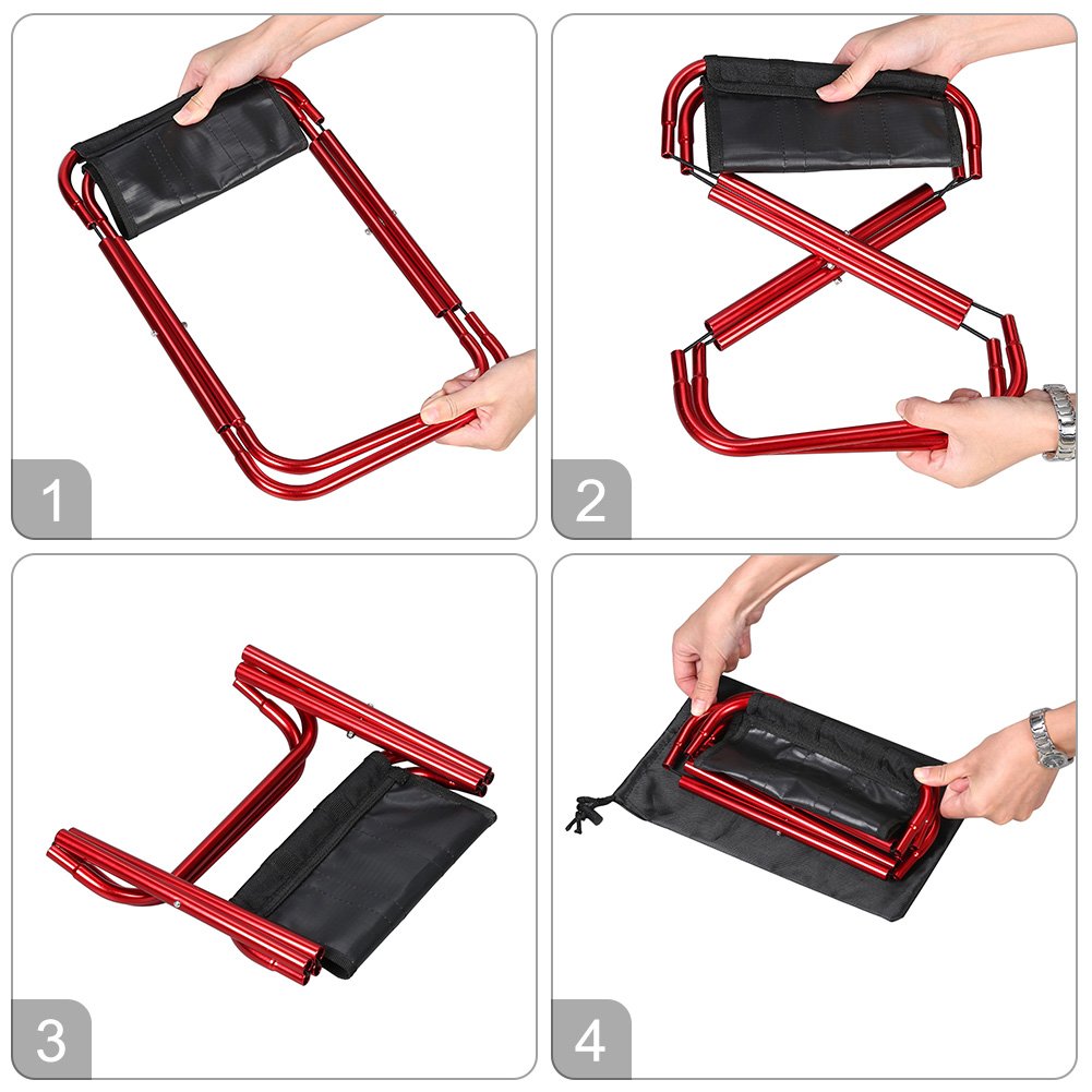 3. Features: Es ist faltbar für Ihre einfache Lagerung. Es ist intuitiv zu montieren und von geringem Gewicht und Mini-Größe für Ihr bequemes Tragen und Verwenden. Der äußerst langlebige Hocker ist an vielen Stellen einsetzbar und mit einer Aufbewahrungstasche ausgestattet, die bis zu 80 kg Gegenstände verstauen kann.